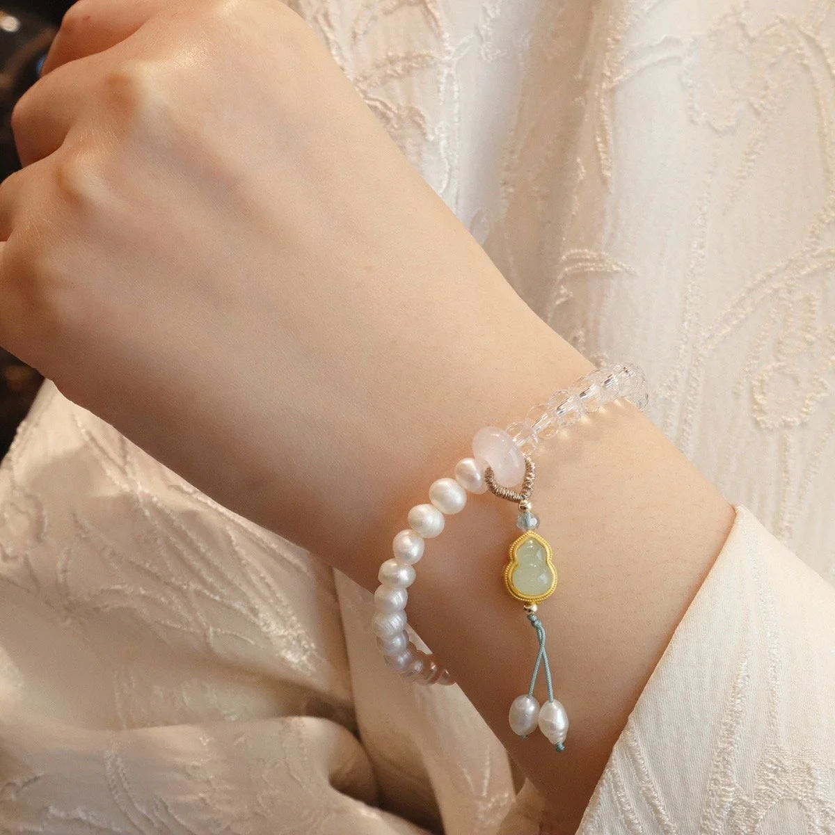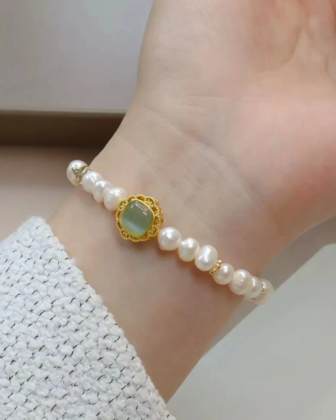 This bracelet features luminous baroque freshwater pearls, each uniquely shaped to highlight natural beauty and individuality. Baroque pearls symbolize purity, wisdom, and elegance, while their irregular forms embody the uniqueness of every wearer.